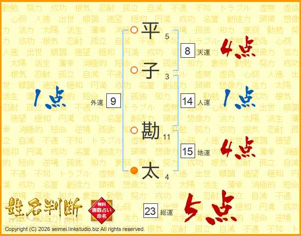 平子勘太さんの総運は23画の5点!