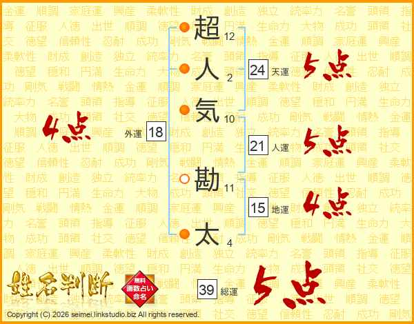 超人気勘太さんの総運は39画の5点!