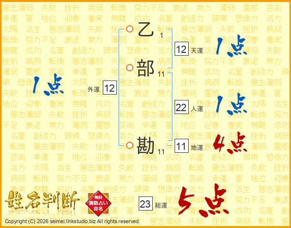 乙部勘さんの総運は23画の5点!