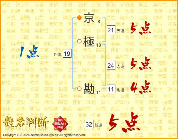 京極勘さんの天運は21画の5点!