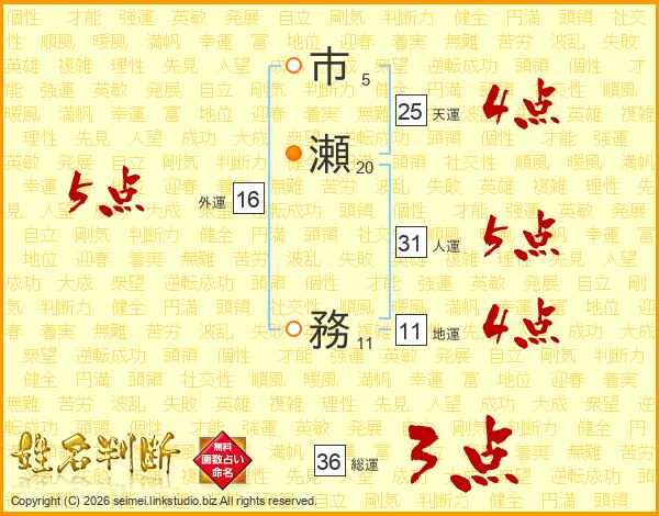市瀬務さんの人運は31画の5点!