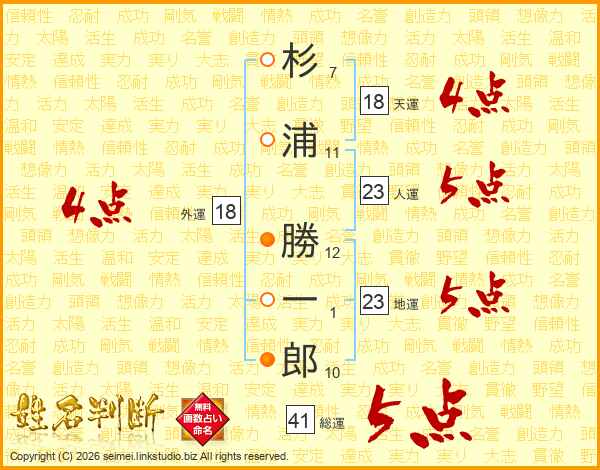 杉浦勝一郎さんの人運は23画の5点!