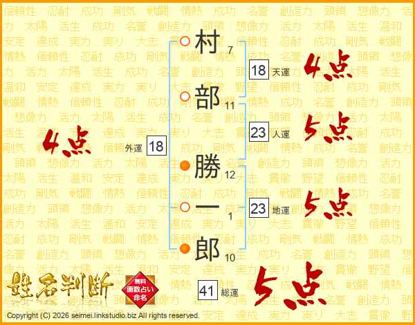 村(7画)部(11画) 勝(12画)一(1画)郎(10画)