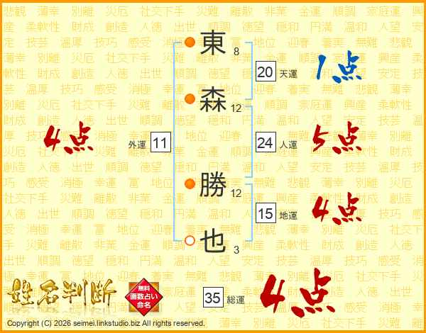 東森勝也さんの総運は35画の4点!