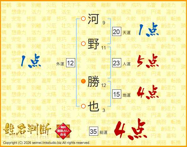 河野勝也さんの総運は35画の4点!