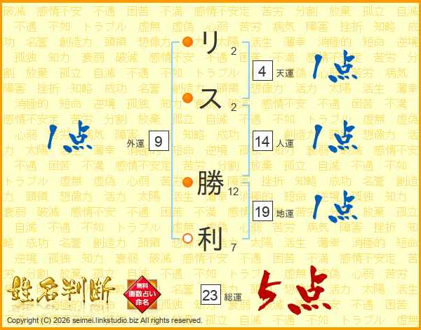 リス勝利さんの総運は23画の5点!