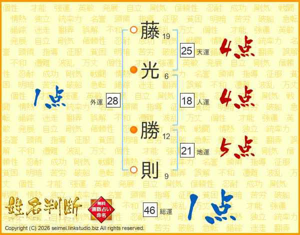 藤光勝則さんの総運は46画の1点!