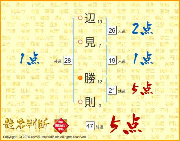 辺見勝則さんの総運は47画の5点!