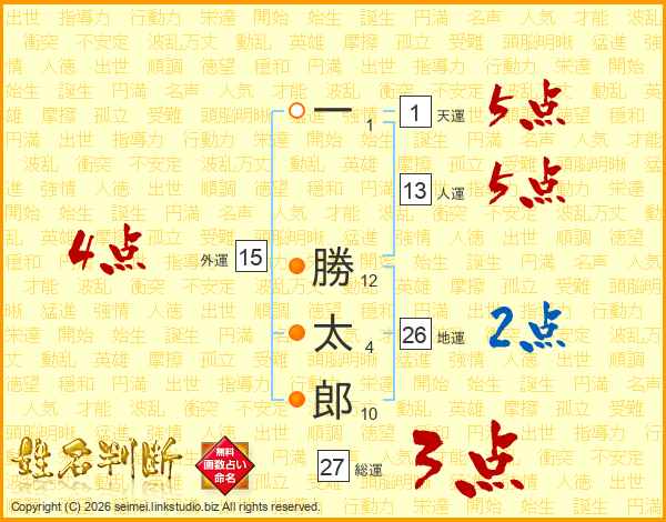 一勝太郎さんの地運は26画の2点!