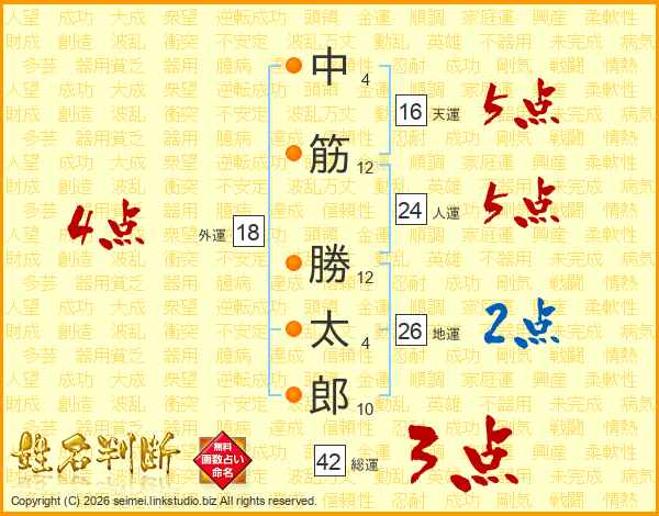 中筋勝太郎さんの地運は26画の2点!
