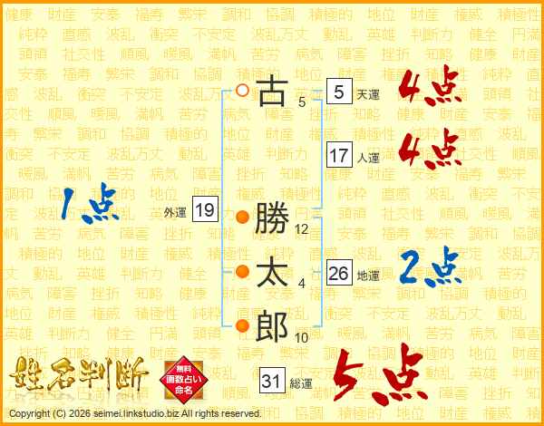 古勝太郎さんの総運は31画の5点!