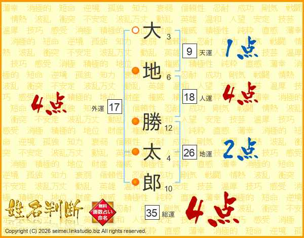 大地勝太郎さんの総運は35画の4点!