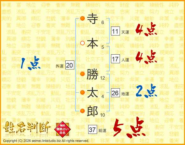 寺本勝太郎さんの地運は26画の2点!