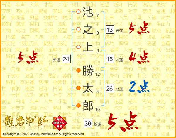 池(7画)之(3画)上(3画) 勝(12画)太(4画)郎(10画)
