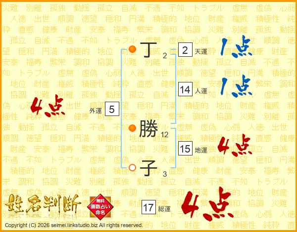 丁勝子さんの総運は17画の4点!