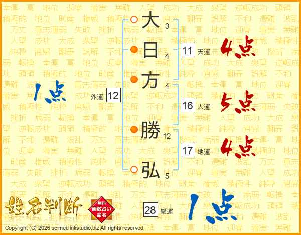大日方勝弘さんの天運は11画の4点!