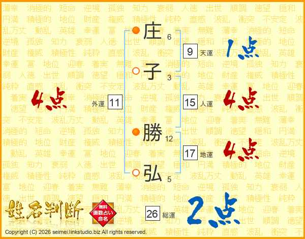 庄子勝弘さんの総運は26画の2点!