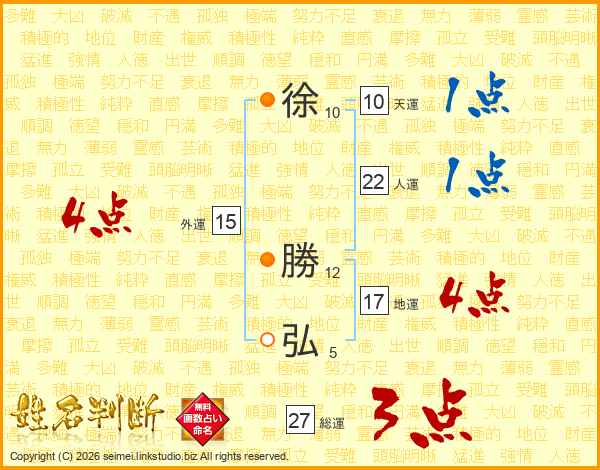 徐(10画) 勝(12画)弘(5画)