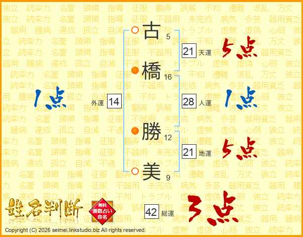 古橋勝美さんの天運は21画の5点!