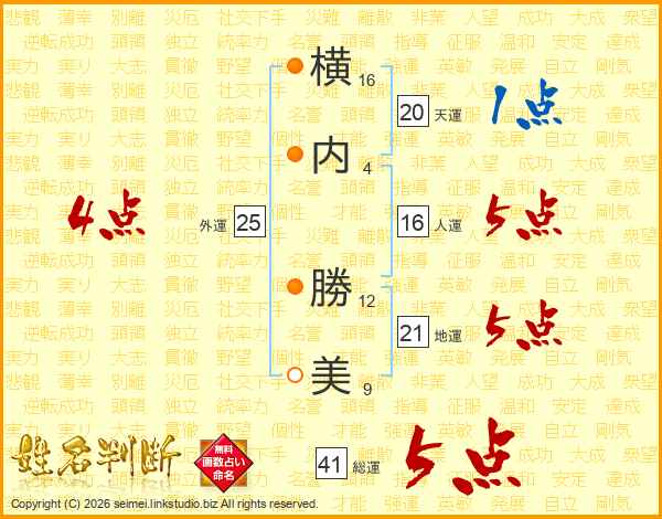 横内勝美さんの総運は41画の5点!