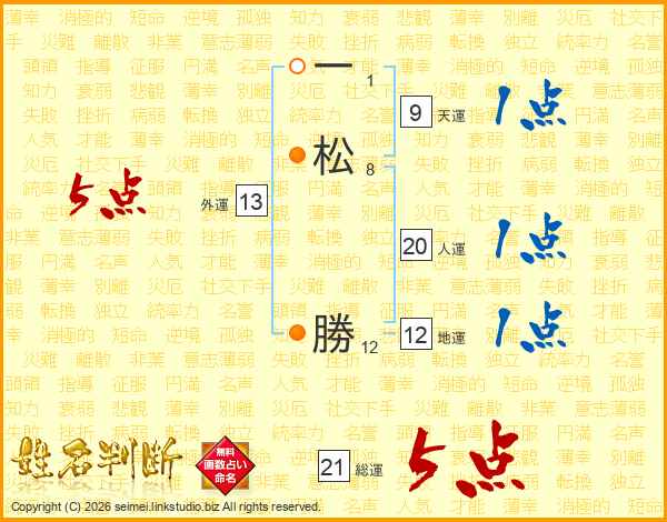 一松勝さんの総運は21画の5点!
