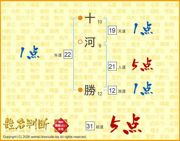 十河勝さんの総運は31画の5点!
