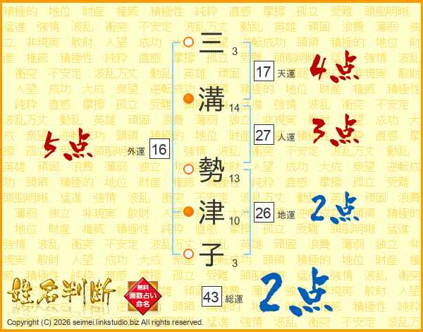 三溝勢津子さんの総運は43画の2点!