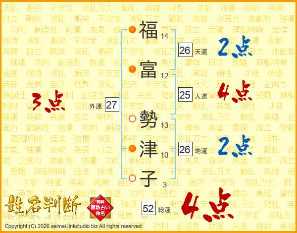 福(14画)富(12画) 勢(13画)津(10画)子(3画)