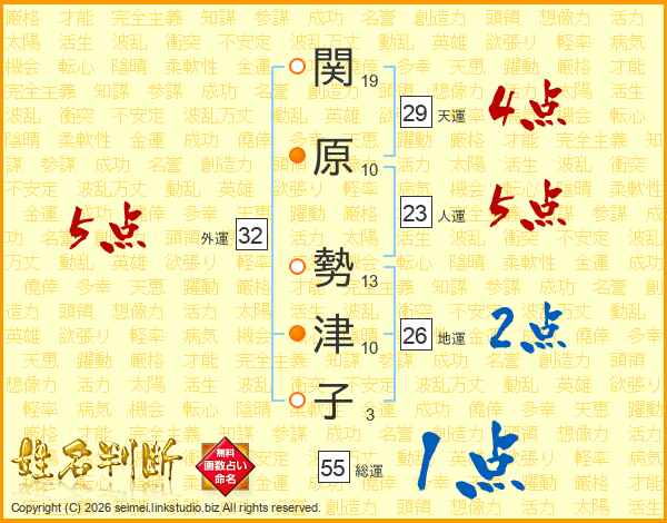関原勢津子さんの外運は32画の5点!