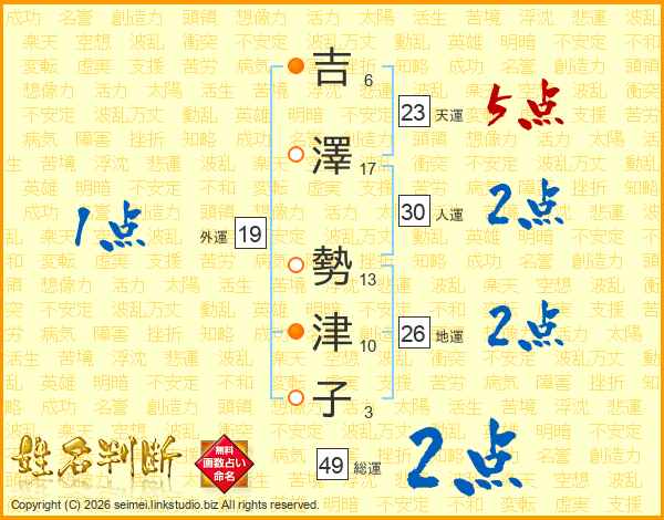 吉澤勢津子さんの天運は23画の5点!