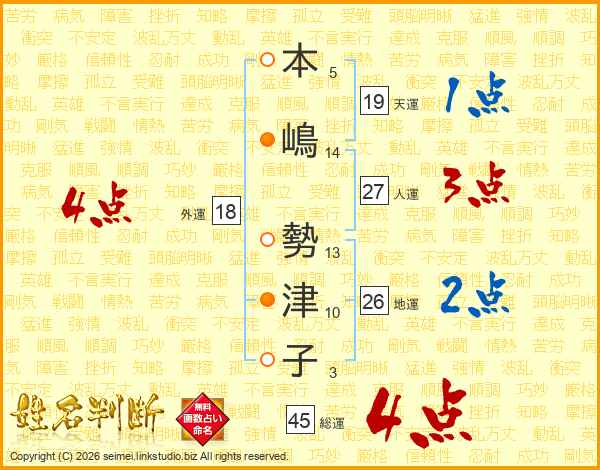 本嶋勢津子さんの総運は45画の4点!
