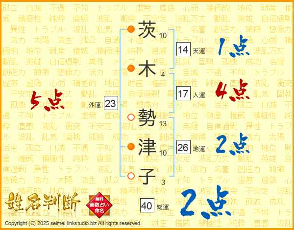 茨木勢津子さんの天運は14画の1点!