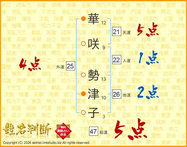 華咲勢津子さんの総運は47画の5点