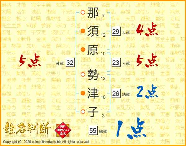 那須原勢津子さんの外運は32画の5点!