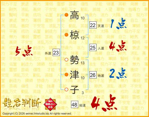 高椋勢津子さんの総運は48画の4点!