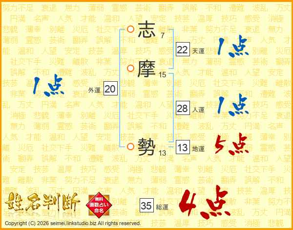 志摩勢さんの総運は35画の4点!