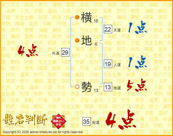横地勢さんの総運は35画の4点!