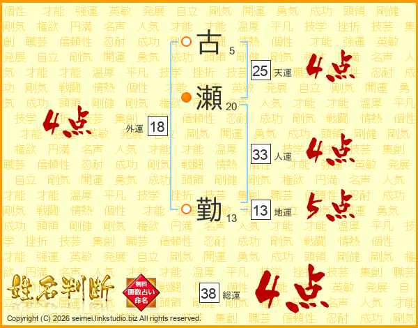 古瀬勤さんの総運は38画の4点!