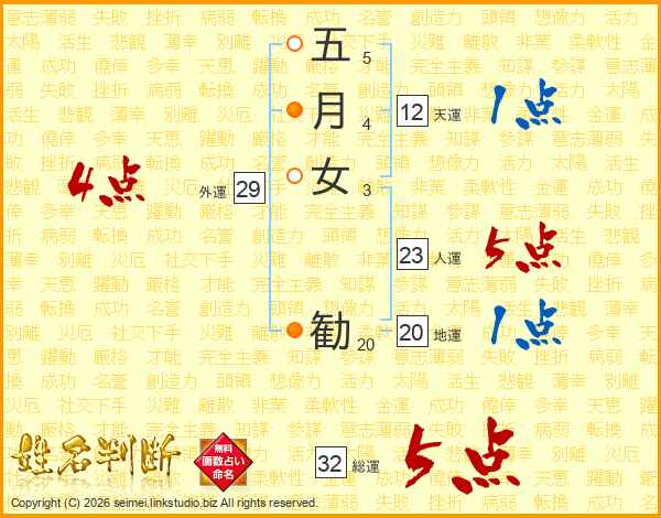 五月女勧さんの総運は32画の5点!