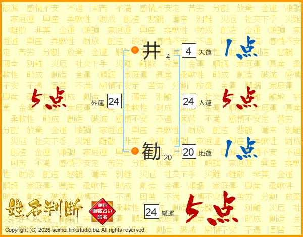 井勧さんの人運は24画の5点!