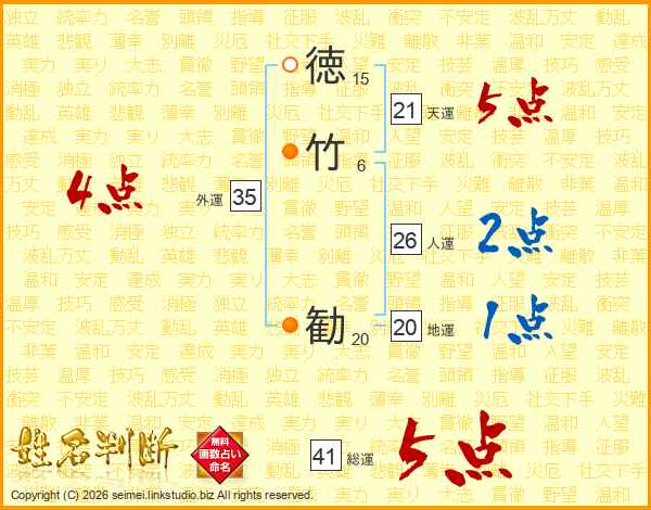 徳竹勧さんの人運は26画の2点!