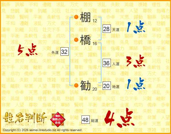 棚橋勧さんの総運は48画の4点!