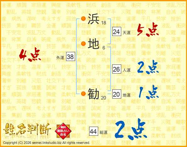 浜地勧さんの総運は44画の2点!