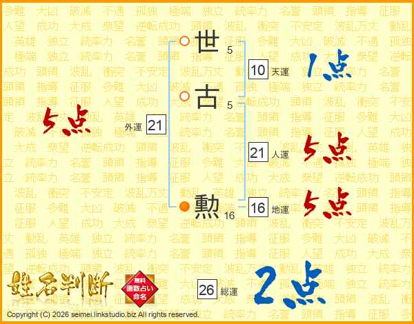 世(5画)古(5画) 勲(16画)