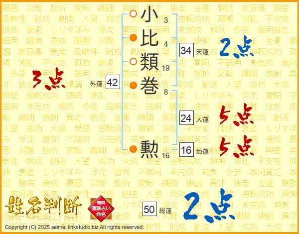 小(3画)比(4画)類(19画)巻(8画) 勲(16画)