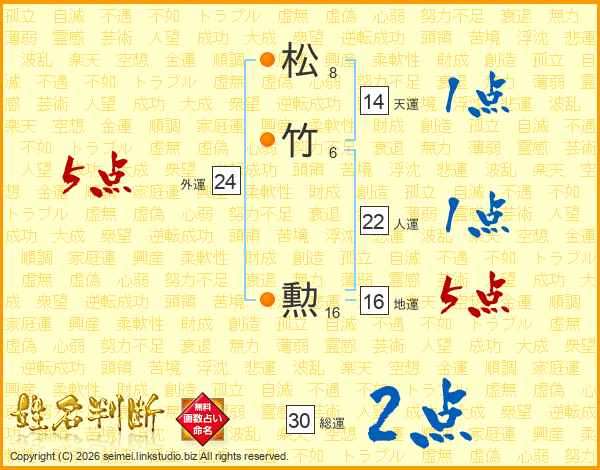 松竹勲さんの人運は22画の1点!