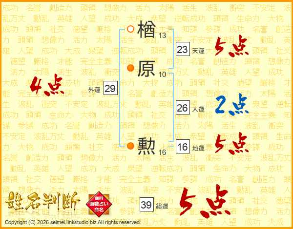 楢原勲さんの総運は39画の5点!