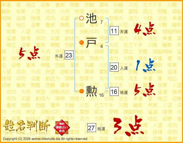 池戸勲さんの天運は11画の4点!