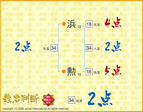 浜勲さんの総運は34画の2点!