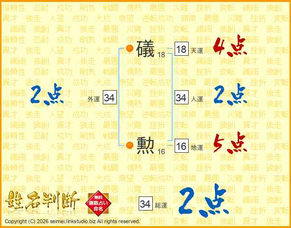 礒勲さんの総運は34画の2点!